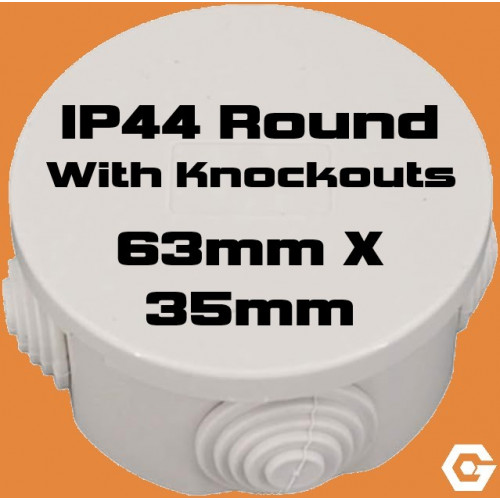 63mm X 35mm Round Junction box IP44 with 4 knockouts